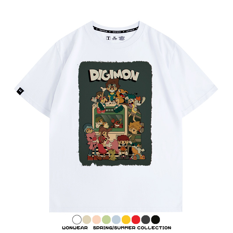 數碼寶貝動漫卡通童年復古周邊上衣純棉短袖T恤衫夏季男寬鬆百搭
