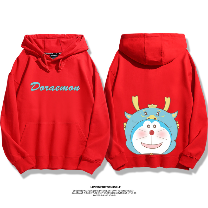 叮噹貓聯名新年衛衣2026秋冬新款親子情侶裝連帽衛衣